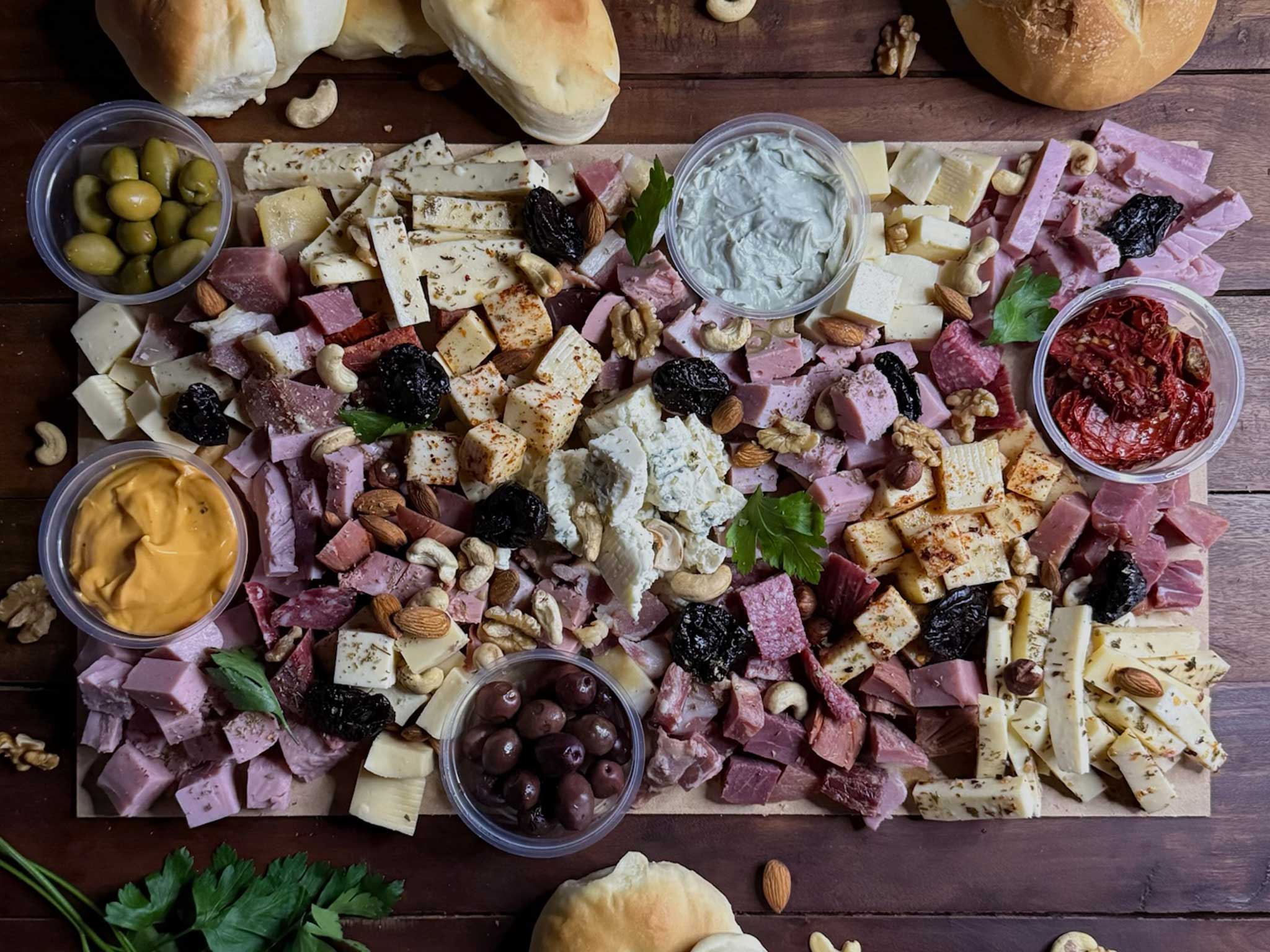 Cada tramo se presenta sobre una tabla de 50 × 30 cm, decorada, resistente y lista para servir. Las piezas están dispuestas con equilibrio de colores, texturas y sabores para lograr una picada visualmente atractiva y sabrosa. Se puede sumar pan artesanal o dips adicionales (consultar).